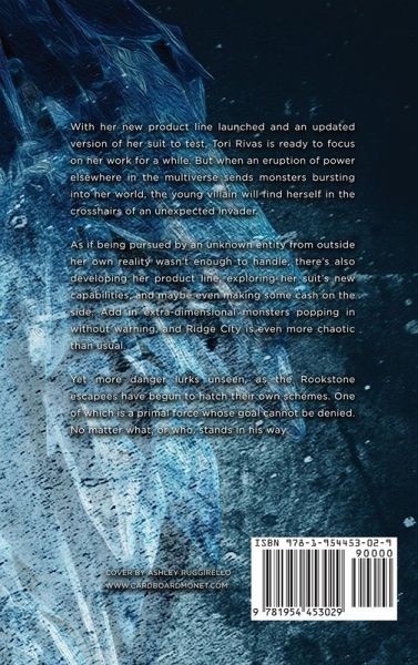 With her new product line launched and an updated version of her suit to test, Tori Rivas is ready to focus on her work for a while. But when an eruption of power elsewhere in the multiverse sends monsters bursting into her world, the young villain will find herself in the crosshairs of an unexpected invader. As if being pursued by an unknown entity from outside her own reality wasn't enough to handle, there's also developing her product line, exploring her suit's new capabilities, and maybe even making some extra money on the side. Add in extradimensional monsters popping in without warning, and Ridge City is even more chaotic than usual. Yet more danger lurks unseen, as the Rookstone escapees have begun to hatch their own schemes. One of which is a primal force whose goal cannot be denied. No matter what, or who, stands in his way.