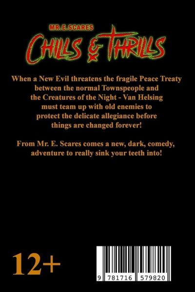 A Stand alone story that is not connected to any other world from Mr. E. Scares When a New Evil threatens the fragile Peace Treaty between the normal Townspeople and the Creatures of the Night - Van Helsing must team up with old enemies to protect the delicate allegiance before things are changed forever! From Mr. E. Scares comes a new, dark, comedy, adventure to really sink your teeth into! Think you know your classic literary monsters and heroes? Think again! For fans of Roald Dahl, David Walliams and Goosebumps! Let Mr. E. Scares Chill you and Thrill you!