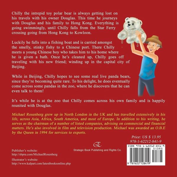 Chilly the intrepid toy polar bear is always getting lost on his travels with his owner Douglas. This time he journeys with Douglas and his family to Hong Kong. Everything is going swimmingly, until Chilly falls from the Star Ferry crossing going from Hong Kong to Kowloon. Luckily he falls into a fishing boat and is carried amongst the smelly, stinky fishy to a Chinese port. There Chilly meets a young Chinese boy who takes him to his home where he is given a bath. Once he's cleaned up, Chilly goes off traveling with his new friend; winding up in the capital city of Beijing. While in Beijing, Chilly hopes to see some real live panda bears, since they're becoming quite rare. To his delight, he does eventually come across some pandas in the zoo, where he discovers that he can even talk to them! It's while he is at the zoo that Chilly comes across his own family and is happily reunited with Douglas. Michael Rosenberg grew up in North London in the UK and has travelled extensively in his life, across Asia, Africa, South America, and most of Europe. In addition to his writing, he serves as the chairman of a number of listed companies, advising on commercial and financial matters. He's also involved in film and television production. Michael was awarded an O.B.E by the Queen in 1994 for services to exports. Publisher's website: http://sbpra.com/MichaelRosenberg