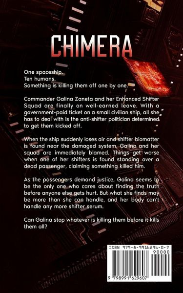 One spaceship. Ten humans. Something is killing them off one by one. Commander Galina Zaneta and her Enhanced Shifter Squad are finally on well-earned leave. With a government-paid ticket on a small civilian ship, all she has to deal with is the anti-shifter politician determined to get them kicked off. When the ship suddenly loses air and shifter biomatter is found by the damaged system, Galina and her squad are immediately blamed. Things get worse when one of her shifters is found standing over a dead passenger, claiming something killed him. As the passengers demand justice, Galina seems to be the only one who cares about finding the truth before anyone else gets hurt. But her body can't handle any more shifter serum, and what she finds may be more than she can handle. Can Galina stop whatever is killing them before it kills them all? This is a standalone novella featuring mystery, action, and a twist you'll never see coming. Perfect for fans of Alien and Michael Crichton. Don't miss this gripping story. Grab your copy now!