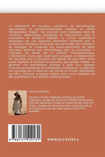 La découverte de nouveaux inhibiteurs de glycoenzymes (glycosidases et glycosyltransférases) présente un intérêt thérapeutique majeur. Ces enzymes sont impliquées dans de nombreux phénomènes biologiques et interviennent dans la progression de plusieurs maladies. La chimie combinatoire dynamique est une approche récemment introduite pour la recherche d'inhibiteurs d'enzymes. Elle est fondée sur l'utilisation de mélanges de composés qui s'auto-assemblent de façon réversible, générant des chimiothèques dont la composition à l'équilibre est dictée par la stabilité thermodynamique. L'introduction d'une cible moléculaire provoque un déplacement de l'équilibre vers la formation des ligands les plus affins. Nous avons appliqué la méthode au lysozyme, glycosidase modèle, en générant une chimiothèque d'imines à partir d'un mélange d'amines saccharidiques et d'aldéhydes aromatiques. La sélection est visualisée par la réduction des imines en amines identifiables par HPLC. Plusieurs analogues stables d'une imine amplifiée ont été synthétisés et leur activité inhibitrice testée.