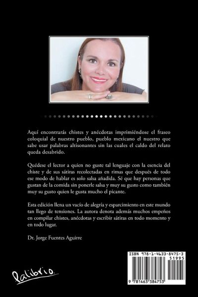 Aquí encontrarás chistes y anécdotas imprimiéndose el fraseo coloquial de nuestro pueblo, pueblo mexicano el nuestro que sabe usar palabras altisonantes sin las cuales el caldo del relato queda desabrido. Quédese el lector a quien no guste tal lenguaje con la esencia del chiste y de sus sátiras recolectadas en rimas que después de todo ese modo de hablar es solo salsa añadida. Sé que hay personas que gustan de la comida sin ponerle salsa y muy su gusto como también muy su gusto quien le gusta mucho el picante. Esta edición llena un vacío de alegría y esparcimiento en este mundo tan llego de tensiones. La autora denota además muchos empeños en compilar chistes, anécdotas y escribir sátiras en todo momento y en todo lugar. Dr. Jorge Fuentes Aguirre