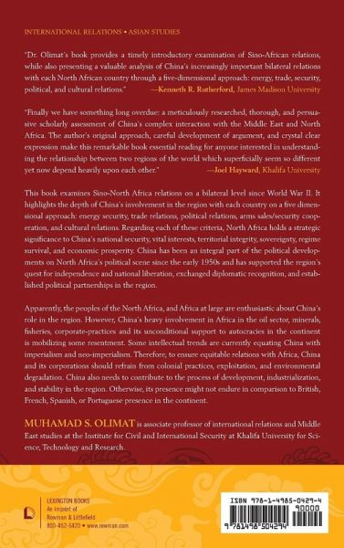 This manuscript examines Sino-North Africa relations on a bilateral level since World War II. It highlights the depth of China's involvement in the region with each country on a five dimensional approach: energy security, trade relations, political relations, arms sales/security cooperation, and cultural relations. Regarding each of these criteria, North Africa holds a strategic significance to China's national security, vital interests, territorial integrity, sovereignty, regime survival, and economic prosperity. China has been an integral part of the political developments on North Africa political scene since the early 1950s. It has supported the region's quest for independence and national liberation, exchanged diplomatic recognition, and established political partnerships. Apparently, the peoples of the North Africa and Africa at large are enthusiastic about China's increasingly involved role. However, China's heavy involvement in the continent's oil sector, minerals, fisheries, corporate-practices, and its unconditional support to autocracies is mobilizing some resentment over China's intentions in the region. Some intellectual trends are currently equating China with imperialism and neo-imperialism. Therefore, to ensure equitable relations with Africa, China and its corporations should refrain from colonial practices, exploitation, and environmental degradation. China also needs to contribute to the region's process of development, industrialization, development, and stability. Otherwise, its presence might not endure in comparison to British, French, Spanish, or Portuguese presence in the continent.