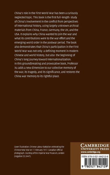 China's role in the First World War has been a curiously neglected topic. This 2005 book is a full-length study of China's involvement in the conflict from perspectives of international history, using largely unknown archival materials from China, France, Germany, UK, and USA. It explains why China wanted to join the war and what were its contributions to the war effort and the emerging world order in the postwar period. The book also demonstrates that China's participation in the First World War was not only a defining moment in modern Chinese and world history, but also the beginning of China's long journey toward internationalization. In this provocative book, Professor Xu adds a new dimension to our collective memory of the war, its tragedy and its significance, and restores the China war memory into its rightful place.