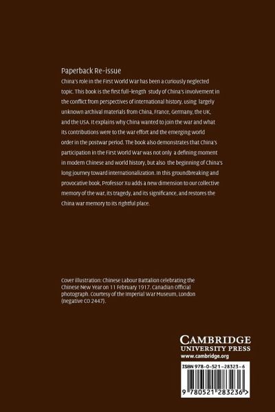 China's role in the First World War has been a curiously neglected topic. This 2005 book is a full-length study of China's involvement in the conflict from perspectives of international history, using largely unknown archival materials from China, France, Germany, UK, and USA. It explains why China wanted to join the war and what were its contributions to the war effort and the emerging world order in the postwar period. The book also demonstrates that China's participation in the First World War was not only a defining moment in modern Chinese and world history, but also the beginning of China's long journey toward internationalization. In this provocative book, Professor Xu adds a new dimension to our collective memory of the war, its tragedy and its significance, and restores the China war memory into its rightful place.