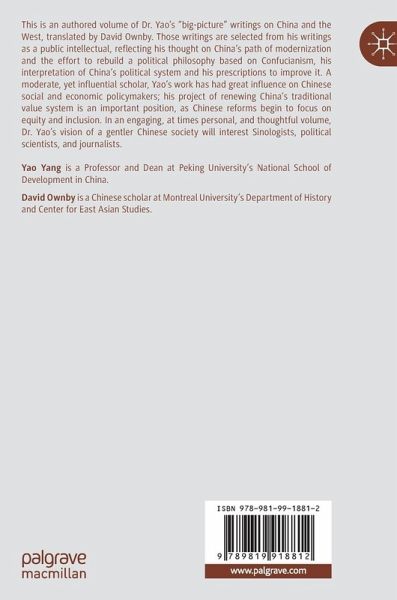 This is an authored volume of Dr. Yao's "big-picture" writings on China and the West, translated by David Ownby. Those writings are selected from his writings as a public intellectual, reflecting his thought on China's path of modernization and the effort to rebuild a political philosophy based on Confucianism, his interpretation of China's political system and his prescriptions to improve it. A moderate, yet influential scholar, Yao's work has had great influence on Chinese social and economic policymakers; his project of renewing China's traditional value system is an important position, as Chinese reforms begin to focus on equity and inclusion. In an engaging, at times personal, and thoughtful volume, Dr. Yao's vision of a gentler Chinese society will interest Sinologists, political scientists, and journalists.