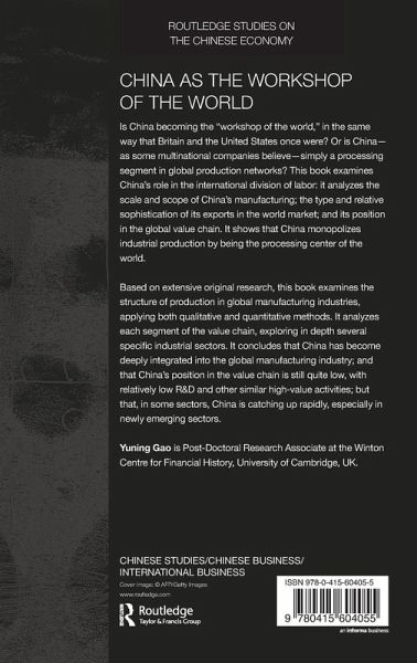 Is China becoming the "workshop of the world" in the same way as Britain and the United States once were; or is China - as some multinational companies believe - simply a processing segment in global production networks? This book examines China's role in the international division of labor: it analyzes the scale and scope of China's manufacture; the type and relative sophistication of its exports in the world market; and its position in the global value chain. It shows that China monopolizes industrial production by being the processing center of world. Based on extensive original research, this book examines the structure of production in global manufacturing industries, applying both qualitative and quantitative methods. It analyzes each segment of the value chain, exploring in depth several specific industrial sectors. It concludes that China has become deeply integrated into global manufacturing industry; that China's position in the value chain is still quite low, with relatively low research and development (R&D) and other similar high-value activities; but that, in some sectors, China is catching up rapidly, especially in newly emerging sectors.