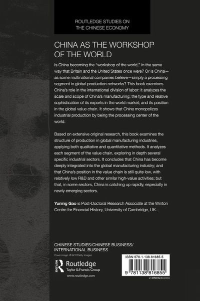 Is China becoming the "workshop of the world" in the same way as Britain and the United States once were; or is China - as some multinational companies believe - simply a processing segment in global production networks? This book examines China's role in the international division of labor: it analyzes the scale and scope of China's manufacture; the type and relative sophistication of its exports in the world market; and its position in the global value chain. It shows that China monopolizes industrial production by being the processing center of world. Based on extensive original research, this book examines the structure of production in global manufacturing industries, applying both qualitative and quantitative methods. It analyzes each segment of the value chain, exploring in depth several specific industrial sectors. It concludes that China has become deeply integrated into global manufacturing industry; that China's position in the value chain is still quite low, with relatively low research and development (R&D) and other similar high-value activities; but that, in some sectors, China is catching up rapidly, especially in newly emerging sectors.
