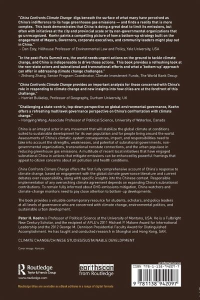 China is an integral actor in any movement that will stabilize the global climate at conditions suited to sustainable development for its own population and for people living around the world. Assessments of China's climatic-system consequences, impact, and responsibilities need to take into account the strengths, weaknesses, and potential of subnational governments, non-governmental organizations, transnational non-state connections, and the urban populace in reducing greenhouse-gas emissions. A multitude of recent local initiatives that have engaged subnational China in actions that mitigate emissions can be enhanced by powerful framings that appeal to citizen concerns about air pollution and health conditions. China Confronts Climate Change offers the first fully comprehensive account of China's response to climate change, based on engagement with the global climate governance literature and current debates over responsibility along with specific insights into the Chinese context. Responsible implementation of any overarching climate agreement depends on expanding China's subnational contributions. To remain fully informed about GHG-emissions mitigation, China watchers and climate-change monitors need to pay close attention to bottom-up developments. The book provides a valuable contemporary resource for students, scholars, and policy leaders at all levels of governance who are concerned with climate change, environmental politics, and sustainable urban development.