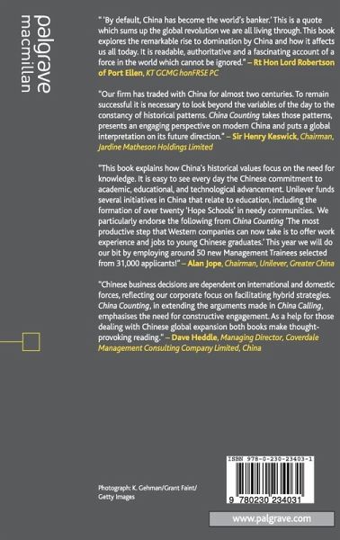 'Chinese business decisions are dependent on international and domestic forces, reflecting our corporate focus on facilitating hybrid strategies. China Counting, in extending the arguments made in China Calling, emphasises the need for constructive engagement. As a help for those dealing with Chinese global expansion both books make thought- provoking reading.' - Dave Heddle, Managing Director, Coverdale Management Consulting Company Limited, China''