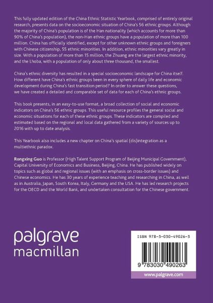 This fully updated edition of the China Ethnic Statistic Yearbook, comprised of entirely original research, presents data on the socioeconomic situation of China's 56 ethnic groups. Although the majority of China's population is of the Han nationality (which accounts for more than 90% of China's population), the non-Han ethnic groups have a population of more than 100 million. China has officially identified, except for other unknown ethnic groups and foreigners with Chinese citizenship, 55 ethnic minorities. In addition, ethnic minorities vary greatly in size. With a population of more than 15 million, the Zhuang are the largest ethnic minority, and the Lhoba, with a population of only about three thousand, the smallest.