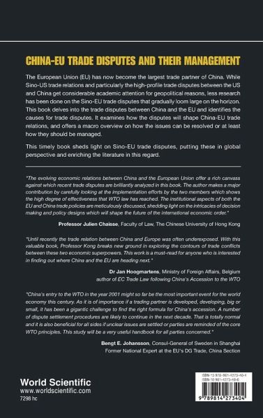 The European Union (EU) has now become the largest trade partner of China. While the Sino-US trade relations and particularly the high-profile trade disputes between the US and China get considerable academic attention for geopolitical reasons, very few researches have been done on the Sino-EU trade disputes that gradually loom large on the horizon. This book delves into the trade disputes between China and the EU and identifies the causes for trade disputes. It examines how the disputes will shape the China-EU trade relations, and offers a macro overview on how the issues can be resolved or at least how they should be managed. This timely book sheds light on the Sino-EU trade disputes thus putting it in global perspective and enriches the literature in this regard.