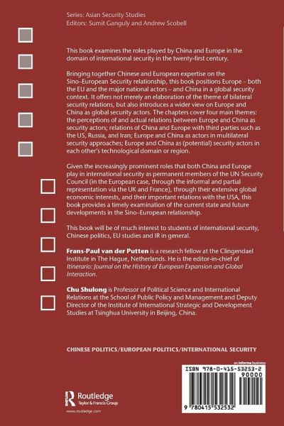 Introduction Frans-Paul van der Putten and Chu Shulong 1. Europe's Views on China's Role in International Security May-Britt Stumbaum 2. China's Views on Europe's Role in International Security Zhang Yanbin 3. Bilateral Security Relations between China and Europe Wang Bo 4. Space and Defence Technology in European-Chinese Security Relations Nicola Casarini 5. Hegemonic Cycles and Sino-European Cooperation in Global Governance Xuan Xingzhang and Yang Xiaoping 6. US-China-Europe Security Relations: The Global Security Structure and Order in the Twenty-First Century Chu Shulong and Chen Songchuan 7. Russia-China-Europe security relations Feng Feng 8. The European Union and East Asian Security: Prepared for the Future? Gudrun Wacker 9. Cooperation and Competition on the Iran Nuclear Dispute: The Role of the European Union and China Willem van Kemenade 10. Chinese and European Engagement in UN Peace Operations Janka Oertel 11. Europe Sails East, China Sails West: Somali Piracy and Shifting Geopolitical Relations in the Indian Ocean Susanne Kamerling and Frans-Paul van der Putten Conclusion Frans-Paul van der Putten and Chu Shulong
