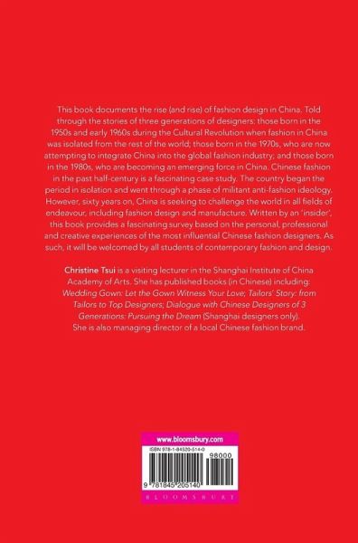 This book documents the rise (and rise) of fashion design in China. Told through the stories of three generations of designers: those born in the 1950s and early 1960s during the Cultural Revolution when fashion in China was isolated from the rest of the world; those born in the 1970s, who are now attempting to integrate China into the global fashion industry; and those born in the 1980s, who are becoming an emerging force in China. Chinese fashion in the past half-century is a fascinating case study. The country began the period in isolation and went through a phase of militant anti-fashion ideology. However, sixty years on, China is seeking to challenge the world in all fields of endeavour, including fashion design and manufacture. Written by an 'insider', this book provides a fascinating survey based on the personal, professional and creative experiences of the most influential Chinese fashion designers. As such, it will be welcomed by all students of contemporary fashion and design.