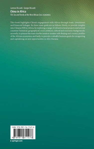 This book highlights China's engagement with Africa through trade, investment and financial linkages. Its three main goals are as follows: firstly, to provide insights into Chinese FDI in Africa, by exploring a range of infrastructural projects and several countries' historical, geographical, socio-political, cultural and economic backgrounds; secondly, to present the main double taxation treaties with Beijing and country profiles of the African economies; and lastly, to provide a valuable business guide for recognizing and capitalizing on new opportunities in Afro-Eurasia.
