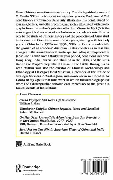 Men of history sometimes make history. The distinguished career of C. Martin Wilbur, who spent twenty-nine years as Professor of Chinese History at Columbia University, illustrates this point. Based on journals, letters, and other records, and richly illustrated with photographs from the author's private collection, China in My Life is the autobiographical account of a scholar-teacher who devoted his career to the study of Chinese history and the promotion of Asian studies in America. Over the course of sixty years, starting with his early years in China in the 1920s and 1930s, Wilbur reflects on and details the growth of an academic discipline in this country as well as vast changes in the Asian historical landscape, including developments in Japan and Taiwan over a thirty-five-year period, conditions in Korea, Hong Kong, India, Burma, and Thailand in the 1950s, and the situation in the People's Republic of China in the 1980s. During his career, Wilbur was also the curator of Chinese Archaeology and Ethnology at Chicago's Field Museum, a member of the Office of Strategic Services in Washington, and an adviser in war-torn China. China in My Life is that rare event in which the autobiographical words of a distinguished scholar lend immediacy to the great historical events of his lifetime.
