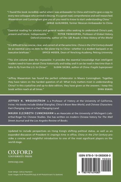 In this fully revised and updated third edition of China in the 21st Century: What Everyone Needs to Know(R), Jeffrey N. Wasserstrom and Maura Elizabeth Cunningham provide cogent answers to urgent questions regarding the world's newest superpower and offer a framework for understanding China's meteoric rise from developing country to superpower. Framing their answers through the historical legacies - Confucian thought, Western and Japanese imperialism, the Mao era, and the Tiananmen Square massacre - that largely define China's present-day trajectory, Wasserstrom and Cunningham introduce readers to the Chinese Communist Party, the building boom in Shanghai, and the environmental fallout of rapid Chinese industrialization. They also explain unique aspects of Chinese culture, such as the one-child policy, and provide insight into Chinese-American relations, a subject that has become increasingly fraught during the Trump era. As Wasserstrom and Cunningham draw parallels between China and other industrialized nations during their periods of development, in particular the United States during its rapid industrialization in the 19th century, they also predict how we might expect China to act in the future vis- -vis the United States, Russia, India, and its East Asian neighbors. Updated to include perspectives on Hong Kong's shifting political status, as well as an expanded discussion of President Xi Jinping's time in office, China in the 21st Century provides a concise and insightful introduction to this significant global power.