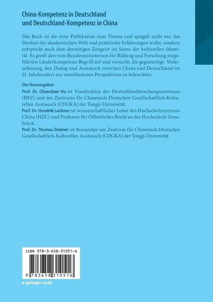 Prof. Dr. Chunchun Hu ist Vizedirektor des Deutschlandforschungszentrums (DFZ) und des Zentrums für Chinesisch-Deutschen Gesellschaftlich-Kulturellen Austausch (CDGKA) der Tongji-Universität. Prof. Dr. Hendrik Lackner ist wissenschaftlicher Leiter des Hochschulzentrums China (HZC) und Professor für Öffentliches Recht an der Hochschule Osnabrück. Prof. Dr. Thomas Zimmer ist Researcher am Zentrum für Chinesisch-Deutschen Gesellschaftlich-Kulturellen Austausch (CDGKA) der Tongji-Universität.