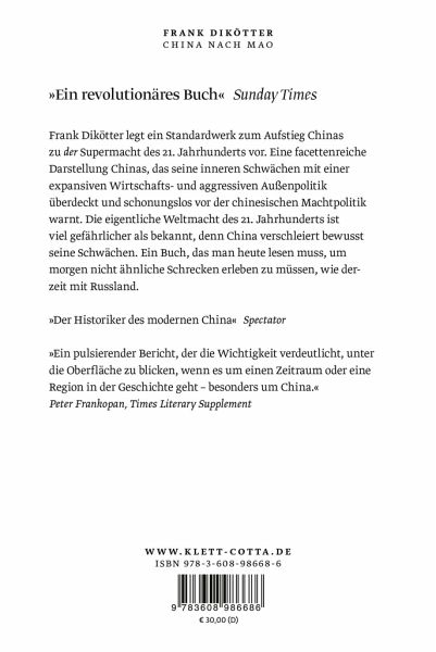 »'China nach Mao' bricht mit dem Bild des wirtschaftlichen Märchens, das so oft von China erzählt wird. [...] Dikötters Buch ist damit nicht nur ein wichtiger Beitrag zur historischen Forschung, sondern regt auch zum Nachdenken über die Zukunft eines Landes an, das die Weltordnung des 21. Jahrhunderts maßgeblich mitgestalten wird. Der Band ist ein Muss für jeden, der sich mit der jüngeren Geschichte und Gegenwart Chinas auseinandersetzen will.« Stefan Messingschlager, Militärgeschichtliche Zeitschrift, Band 83, Heft 01/2024 Stefan Messingschlager Militärgeschichtliche Zeitschrift 20240514