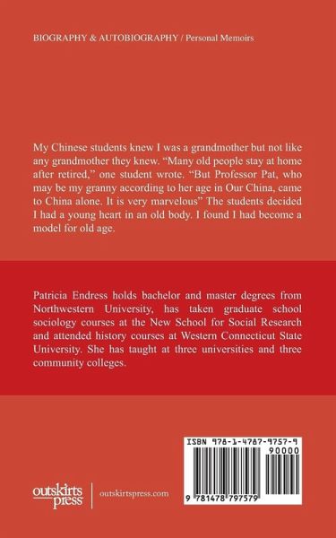 My Chinese students knew I was a grandmother but not like any grandmother they knew. "Many old people stay at home after retired," one student wrote. "But Professor Pat, who may be my granny according to her age in Our China, came to China alone. It is very marvelous" The students decided I had a young heart in an old body. I found I had become a model for old age.