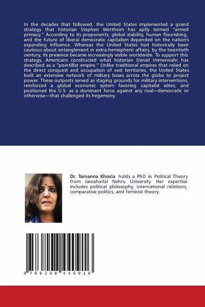In the decades that followed, the United States implemented a grand strategy that historian Stephen Wertheim has aptly termed "armed primacy." According to its proponents, global stability, human flourishing, and the future of liberal democratic capitalism depended on the nation's expanding influence. Whereas the United States had historically been cautious about entanglement in extra-hemispheric affairs, by the twentieth century, its presence became increasingly visible worldwide. To support this strategy, Americans constructed what historian Daniel Immerwahr has described as a "pointillist empire." Unlike traditional empires that relied on the direct conquest and occupation of vast territories, the United States built an extensive network of military bases across the globe to project power. These outposts served as staging grounds for military interventions, reinforced a global economic system favoring capitalist elites, and positioned the U.S. as a dominant force against any rival-democratic or otherwise-that challenged its hegemony.