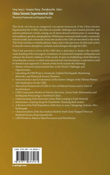 This book introduces an integrated conceptual framework of the China Seismic Experimental Site (CSES), describes its scientific challenges and research priorities, and reports preliminary results coming out of observational infrastructure in seismology, tectonophysics, geodesy, geophysics and geochemistry. Preliminary community fault model, community velocity model, and community strain rate model in the CSES are described in this book. A multidisciplinary test observation system includes GNSS, seismic array, and deep drilling system under construct around middle segment of the Xiansuihe-Xiaojiang fault and other seismogenic faults in the CSES which are also introduced. This book introduces multidisciplinary topics and a wide spectrum of solid earth system to describe various disciplines, methods, and techniques through the CSES. This book presents a vision of the CSES that is dedicated to deepen the scientific understanding of continental earthquake preparation and occurrence and enhance the disaster resilience of the society. It aims at establishing a field laboratory of earthquake science, in which international and interdisciplinary cooperation could be fostered and supported. Contents of this book include the following: