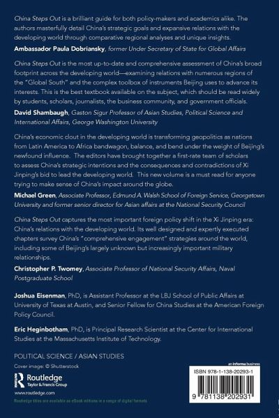 What are Beijing's objectives towards the developing world and how they have evolved and been pursued over time? Featuring contributions by recognized experts, China Steps Out analyzes and explains China's strategies in Southeast Asia, Central Asia, South Asia, Africa, Middle East, and Latin America, and evaluates their effectiveness. This book explains how other countries perceive and respond to China's growing engagement and influence. Each chapter is informed by the functionally organized academic literature and addresses a uniform set of questions about Beijing's strategy. Using a regional approach, the authors are able to make comparisons among regions based on their economic, political, military, and social characteristics, and consider the unique features of Chinese engagement in each region and the developing world as a whole. China Steps Out will be of great interest to students and scholars of Chinese foreign policy, comparative political economy, and international relations.