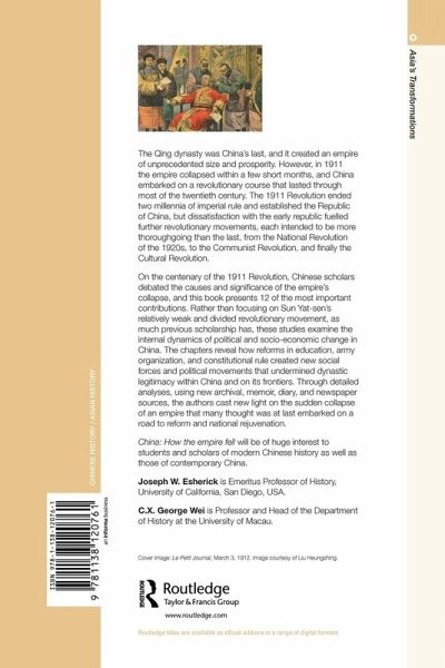 The Qing dynasty was China's last, and it created an empire of unprecedented size and prosperity. However in 1911 the empire collapsed within a few short months, and China embarked on a revolutionary course that lasted through most of the twentieth century. The 1911 Revolution ended two millennia of imperial rule and established the Republic of China, but dissatisfaction with the early republic fuelled further revolutionary movements, each intended to be more thoroughgoing than the last, from the National Revolution of the 1920s, to the Communist Revolution, and finally the Cultural Revolution. On the centenary of the 1911 Revolution, Chinese scholars debated the causes and significance of the empire's collapse, and this book presents twelve of the most important contributions. Rather than focusing on Sun Yat-sen's relatively weak and divided revolutionary movement, as much previous scholarship has, these studies examine the internal dynamics of political and socio-economic change in China. The chapters reveal how reforms in education, army organization, and constitutional rule created new social forces and political movements that undermined dynastic legitimacy within China and on its frontiers. Through detailed analyses, using new archival, memoir, diary, and newspaper sources, the authors cast new light on the sudden collapse of an empire that many thought was at last embarked on a road to reform and national rejuvenation. China: How the Empire Fell will be of huge interest to students and scholars of modern Chinese history as well as those of contemporary China.