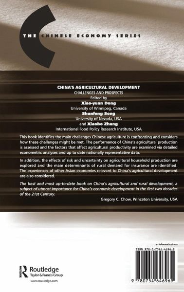 This book identifies the main challenges Chinese agriculture is confronting and considers how these challenges might be met. The performance of China's agricultural production and factors that affect agricultural productivity are comprehensively assessed with the use of detailed econometric analysis and up to date nationally representative data.