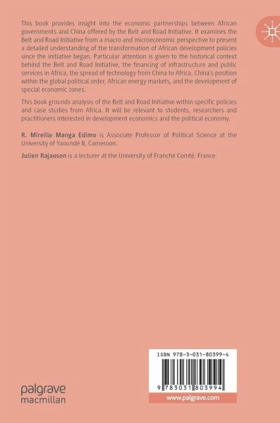 This book provides insight into the economic partnerships between African governments and China offered by the Belt and Road Initiative. It examines the Belt and Road Initiative from a macro and microeconomic perspective to present a detailed understanding of the transformation of African development policies since the initiative began. Particular attention is given to the historical context behind the Belt and Road Initiative, the financing of infrastructure and public services in Africa, the spread of technology from China to Africa, China's position within the global political order, African energy markets, and the development of special economic zones.