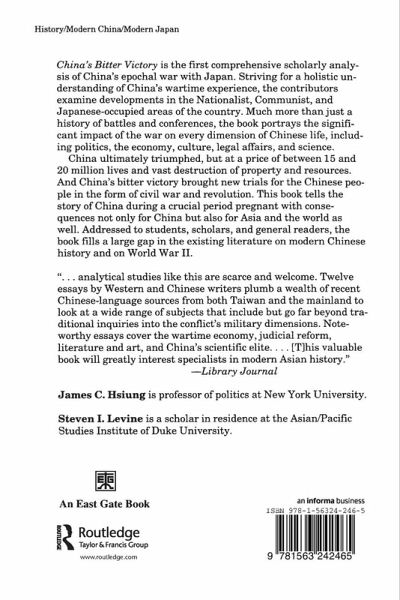 "China's Bitter Victory" is a comprehensive analysis of China's epochal war with Japan. Striving for a holistic understanding of China's wartime experience, the contributors examine developments in the Nationalist, communist, and Japanese-occupied areas of the country. More than just a history of battles and conferences, the book portrays the significant impact of the war on every dimension of Chinese life, including politics, the economy, culture, legal affairs, and science. For within the overriding struggle for national survival, the competition for political goals continued. China ultimately triumphed, but at a price of between 15 and 20 million lives and vast destruction of property and resources. And China's bitter victory brought new trials for the Chinese people in the form of civil war and revolution. This book tells the story of China during a crucial period pregnant with consequences not only for China but also for Asia and the world as well. Addressed to students, scholars, and general readers, the book aims to fill a gap in the existing literature on modern Chinese history and on World War II.