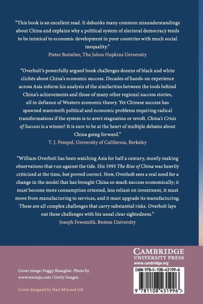 China's Crisis of Success provides new perspectives on China's rise to superpower status, showing that China has reached a threshold where success has eliminated the conditions that enabled miraculous growth. Continued success requires re-invention of its economy and politics. The old economic strategy based on exports and infrastructure now piles up debt without producing sustainable economic growth, and Chinese society now resists the disruptive change that enabled earlier reforms. While China's leadership has produced a strategy for successful economic transition, it is struggling to manage the politics of implementing that strategy. After analysing the economics of growth, William H. Overholt explores critical social issues of the transition, notably inequality, corruption, environmental degradation, and globalisation. He argues that Xi Jinping is pursuing the riskiest political strategy of any important national leader. Alternative outcomes include continued impressive growth and political stability, Japanese-style stagnation, and a major political-economic crisis.