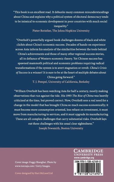 China's Crisis of Success provides new perspectives on China's rise to superpower status, showing that China has reached a threshold where success has eliminated the conditions that enabled miraculous growth. Continued success requires re-invention of its economy and politics. The old economic strategy based on exports and infrastructure now piles up debt without producing sustainable economic growth, and Chinese society now resists the disruptive change that enabled earlier reforms. While China's leadership has produced a strategy for successful economic transition, it is struggling to manage the politics of implementing that strategy. After analysing the economics of growth, William H. Overholt explores critical social issues of the transition, notably inequality, corruption, environmental degradation, and globalisation. He argues that Xi Jinping is pursuing the riskiest political strategy of any important national leader. Alternative outcomes include continued impressive growth and political stability, Japanese-style stagnation, and a major political-economic crisis.