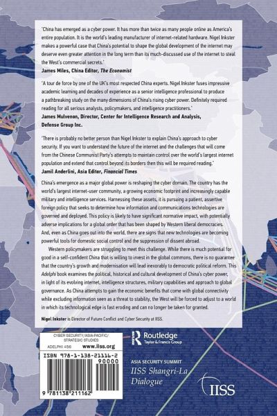 Western policymakers are struggling to meet this challenge. While there is much potential for good in a self-confident China that is willing to invest in the global commons, there is no guarantee that the country's growth and modernisation willlead inexorably to democratic political reform. This Adelphi book examines the political, historical and cultural development of China's cyber power, in light of its evolving internet, intelligence structures, military capabilities and approach to global governance. As China attempts to gain the economic benefits that come with global connectivity while excluding information seen as a threat to stability, the West will be forced to adjust to a world in which its technological edge is fast eroding and can no longer be taken for granted.