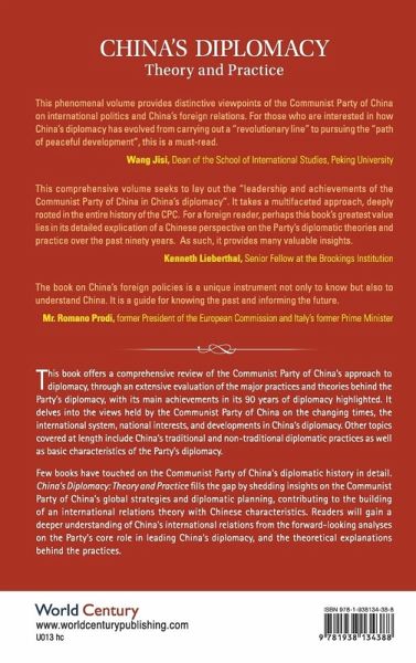 This book offers a comprehensive review of the Communist Party of China's approach to diplomacy, through an extensive evaluation of the major practices and theories behind the Party's diplomacy, with its main achievements in its 90 years of diplomacy highlighted. It delves into the views held by the Communist Party of China on the changing times, the international system, national interests, and developments in China's diplomacy. Other topics covered at length include China's traditional and non-traditional diplomatic practices as well as basic characteristics of the Party's diplomacy. Few books have touched on the Communist Party of China's diplomatic history in detail. China's Diplomacy: Theory and Practice fills the gap by shedding insights on the Communist Party of China's global strategies and diplomatic planning, contributing to the building an international relations theory with Chinese characteristics. Readers will gain a deeper understanding of China's international relations from the forward-looking analyses on the Party's core role in leading China's diplomacy, and the theoretical explanations behind the practices.