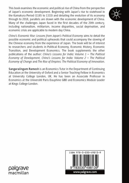 China's Economic Rise: Lessons from Japan's Political Economy aims to detail the possible economic and political upheavals that could accompany the slowing of the Chinese economy from the experience of Japan. The book will be of interest to researchers and students in Political Economy, Economic History, Economic Transition, and Development Economics. The book supplements the other publications of the author: China's Lessons for India:Volume 1 - The Political Economy of Development, China's Lessons for India: Volume 2 - The Political Economy of Change and The Rise of Empires: The Political Economy of Innovation.