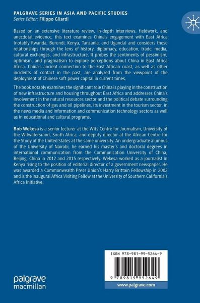 Based on an extensive literature review, in-depth interviews, fieldwork, and anecdotal evidence, this text examines China's engagement with East Africa (notably Rwanda, Burundi, Kenya, Tanzania, and Uganda) and considers these relationships through the lens of history, diplomacy, education, trade, media, cultural exchanges, and infrastructure. It probes the sentiments of pessimism, optimism, and pragmatism to explore perceptions about China in East Africa Africa. China's ancient connection to the East African coast, as well as other incidents of contact in the past, are analyzed from the viewpoint of the deployment of Chinese soft power capital in current times.