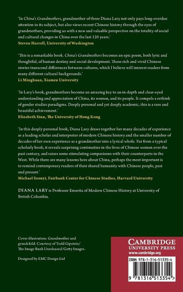 Over the past century and a half, China has experienced foreign invasion, warfare, political turmoil, and revolution, along with massive economic and technological change. Through all this change, there is one stable element: grandmothers, as child carers, household managers, religious devotees, transmitters of culture, and, above all, sources of love, warmth, and affection. In this interdisciplinary and longitudinal study, China's Grandmothers sheds light on the status and lives of grandmothers in China over the years from the late Qing Dynasty to the twenty-first century. Combining a wide range of historical and biographical materials, Diana Lary explores the changes and continuities in the lives of grandmothers through revolution, wars, and radical upheaval to the present phase of economic growth. Informed by her own experience as a grandchild and grandmother, Lary offers a fresh and compelling way of looking at gender, family, and ageing in modern Chinese society.