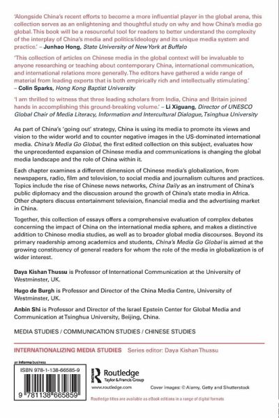 Each chapter examines a different dimension of Chinese media's globalization, from newspapers, radio, film and television, to social media and journalism. Topics include the rise of Chinese news networks, China Daily as an instrument of China's public diplomacy and the discussion around the growth of China's state media in Africa. Other chapters discuss entertainment television, financial media and the advertising market in China.