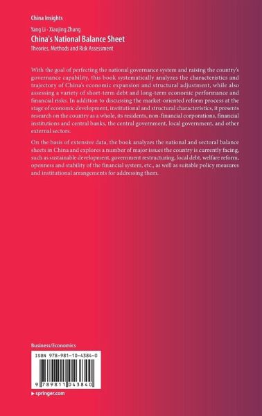 With the goal of perfecting the national governance system and raising the country's governance capability, this book systematically analyzes the characteristics and trajectory of China's economic expansion and structural adjustment, while also assessing a variety of short-term debt and long-term economic performance and financial risks. In addition to discussing the market-oriented reform process at the stage of economic development, institutional and structural characteristics, it presents research on the country as a whole, its residents, non-financial corporations, financial institutions and central banks, the central government, local government, and other external sectors.