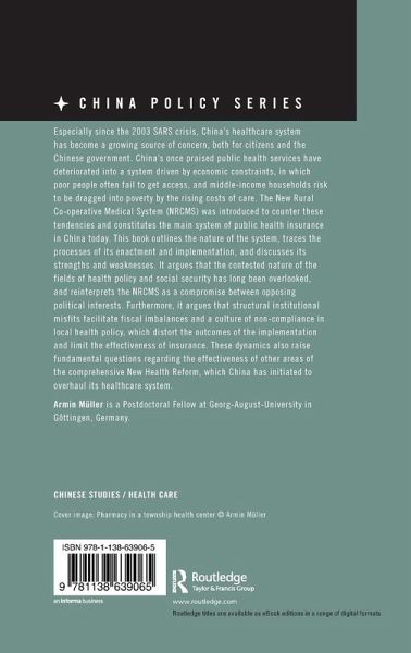The New Rural Co-operative Medical System (NRCMS) constitutes the main system of public health insurance in China today. This book outlines the nature of the system, traces the processes of its enactment and implementation, and discusses its strengths and weaknesses. It argues that the contested nature of the fields of health policy and social security has long been overlooked, and reinterprets the NRCMS as a compromise between opposing political interests. Furthermore, it argues that structural institutional misfits facilitate fiscal imbalances and a culture of non-compliance in local health policy, which distort the outcomes of the implementation and limit the effectiveness of insurance.
