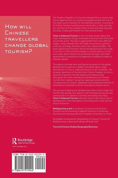 The People's Republic of China has changed from a country which actively discouraged tourism into one of the major source markets for the international industry; the 35 million Chinese travelling across the border in 2005 are merely the tip of the iceberg. China's Outbound Tourism is the first book on this major development and has been written using a multitude of sources from China and around the world. The topic is approached from many angles, using methods from the fields of economics, political sciences, sociology and cross-cultural studies. The book explains the economic and social background of the surge in tourism and the changes in policy in the country since 1949, when it moved from prevention through controlled development to encouragement of outbound travels. Throughout the book, facts and figures are given for the global development as well as in-depth information about China's key destinations. The growing importance of tourists from China is however not just a question of quantity; the text explains the features which distinguish their travel motivations and behaviours from 'western' and Japanese tourists, and the consequences for product adaptation and marketing methods for destinations interested in attracting and satisfying Chinese tourists. Arlt's groundbreaking book cannot be ignored by professionals, academics and students of tourism and leisure; it offers fresh insight into the topic and indicates some of the future lines of development in this area.
