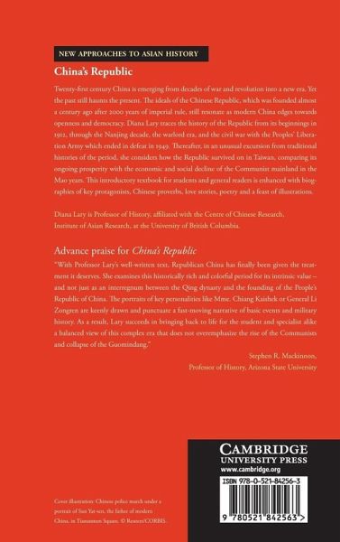 Twenty-first century China is emerging from decades of war and revolution into a new era. Yet the past still haunts the present. The ideals of the Chinese Republic, which was founded almost a century ago after 2000 years of imperial rule, still resonate as modern China edges towards openness and democracy. Diana Lary traces the history of the Republic from its beginnings in 1912, through the Nanjing decade, the warlord era, and the civil war with the Peoples' Liberation Army which ended in defeat in 1949. Thereafter, in an unusual excursion from traditional histories of the period, she considers how the Republic survived on in Taiwan, comparing its ongoing prosperity with the economic and social decline of the Communist mainland in the Mao years. This introductory textbook for students and general readers is enhanced with biographies of key protagonists, Chinese proverbs, love stories, poetry and a feast of illustrations.