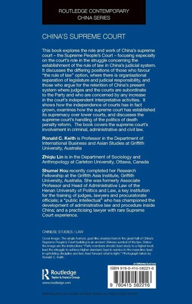 This book examines the learning curve of the People's Supreme Court of China as an expanding Chinese national institution that has played a key role in the struggle for the rule of law in China. Within the unity of state administration and the requirements of the constitution, the court has negotiated the changing tension between politics and law through improvising new formats of interpretation and supervision in response to the changing priorities of revolution and market reform.