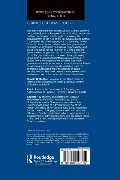 Ronald C. Keith is Professor in the Department of International Business and Asian Studies at Griffith University, Australia Lin Zhiqiu is in the Department of Sociology and Anthropology at Carleton University, Ottawa, Canada Shumei Hou is a Research Fellow at the Griffith Asia Institute, Griffith University, Australia. She is also Associate Professor and Head of Administrative Law at Zhengzhou University of Politics and Law, a key institution for the training of judges, lawyers and procuratorate officials; a "public intellectual" who has championed the development of administrative law and procedure inside China; and a practicising lawyer with rare Supreme Court experience.