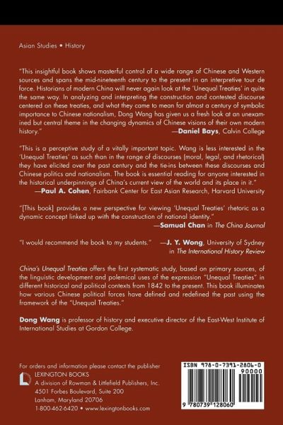 China's Unequal Treaties offers a study, based on primary sources, of the linguistic development and polemical uses of the expression 'Unequal Treaties' to refer to the treaties written between 1842 and 1943. Although the expression has occupied a central position in both Chinese collective memory and English historiographies, China's Unequal Treaties is the first study of the phrase and its interpretations.