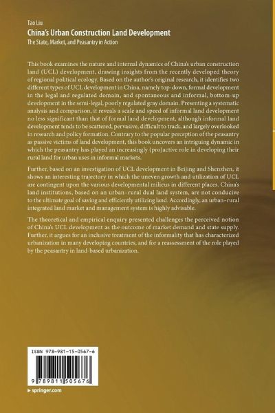 This book examines the nature and internal dynamics of China's urban construction land (UCL) development, drawing insights from the recently developed theory of regional political ecology. Based on the author's original research, it identifies two different types of UCL development in China, namely top-down, formal development in the legal and regulated domain, and spontaneous and informal, bottom-up development in the semi-legal, poorly regulated gray domain. Presenting a systematic analysis and comparison, it reveals a scale and speed of informal land development no less significant than that of formal land development, although informal land development tends to be scattered, pervasive, difficult to track, and largely overlooked in research and policy formation. Contrary to the popular perception of the peasantry as passive victims of land development, this book uncovers an intriguing dynamic in which the peasantry has played an increasingly (pro)active role in developing theirrural land for urban uses in informal markets. Further, based on an investigation of UCL development in Beijing and Shenzhen, it shows an interesting trajectory in which the uneven growth and utilization of UCL are contingent upon the various developmental milieus in different places. China's land institutions, based on an urban-rural dual land system, are not conducive to the ultimate goal of saving and efficiently utilizing land. Accordingly, an urban-rural integrated land market and management system is highly advisable. The theoretical and empirical enquiry presented challenges the perceived notion of China's UCL development as the outcome of market demand and state supply. Further, it argues for an inclusive treatment of the informality that has characterized urbanization in many developing countries, and for a reassessment of the role played by the peasantry in land-based urbanization.