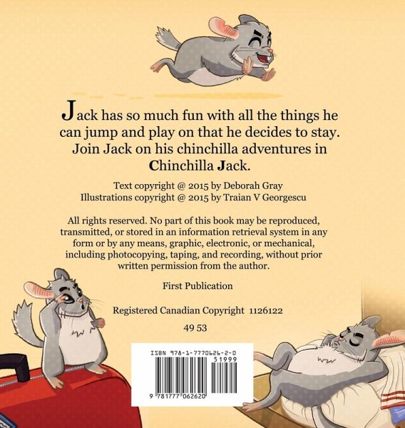 Chinchilla Jack and The Walk in Closet is a children's book that introduces my pet Jack the chinchilla to you the reader. Jack was bounced around from place to place living in very small minimal accommodations when he was brought to me and into his forever home. Jack loves to play outside and explore the house and thus discovered the adventures of my walk in closet. One day after watching Jack play with all the objects in my closet I sat down and put pen to paper to bring Jacks story to the pages of a children book.