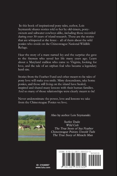 Chincoteague Ponies - the wild ponies who live on the Chincoteague National Wildlife Refuge- are a source of inspiration for many. In this book of true Chincoteague Pony tales readers will find stories from ponies living on the island, take-home ponies, new foals and Misty descendants. They will be inspired by the many meant-to-be tales. They'll learn how some of the ponies got their names and hear of their lives in the wild. If you love ponies or even if you are an animal lover who likes to be inspired, this is the book for you!