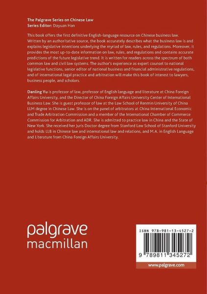 This book offers the first definitive English-language resource on Chinese business law. Written by an authoritative source, the book accurately describes what the business law is and explains legislative intentions underlying the myriad of law, rules, and regulations. Moreover, it provides the most up-to-date information on law, rules, and regulations and contains accurate predictions of the future legislative trend. It is written for readers across the spectrum of both common law and civil law systems. The author's experience as expert counsel to Chinese central governmental legislative functions including the State Council Legislative Affairs Office and the expert editor and translator in chief of the national administrative regulations in business and finance, extensive experience of international legal practice and arbitration, and teaching and research experience in international business law and Chinese law will make this book of interest to lawyers, business people, and scholars.